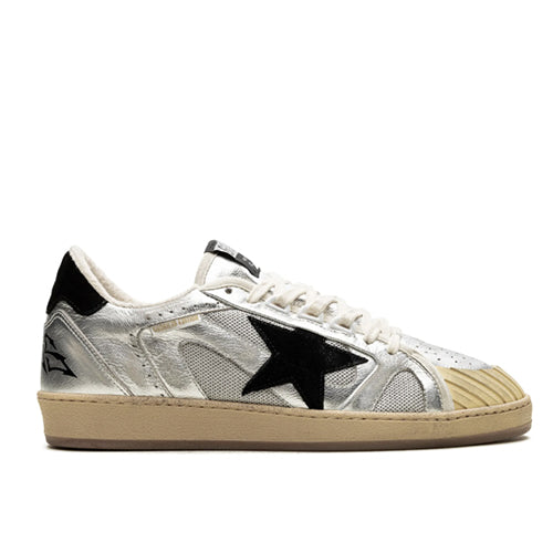 골든구스 블랙 스웨이드 스타와 힐탭 실버 레더 볼스타 LAB 스니커즈