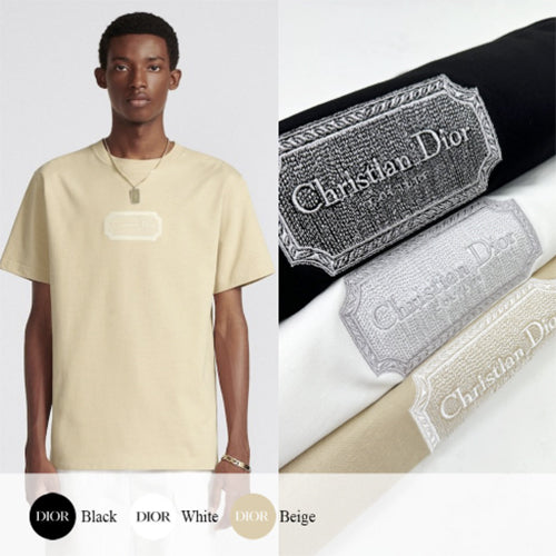 디올 콘트라스트 자수 반팔 티셔츠