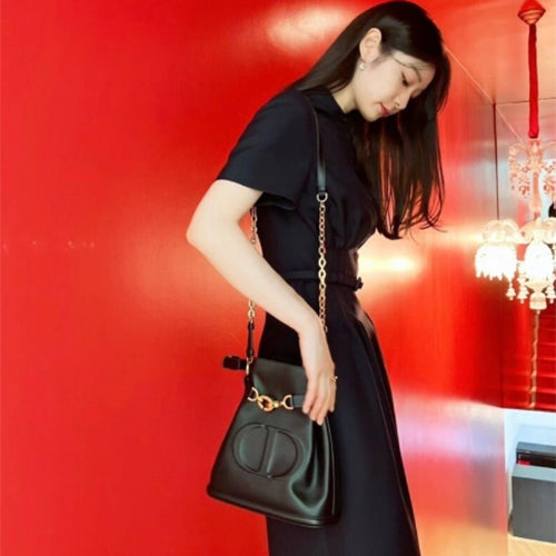 디올 미디움 세 디올 백 CD 엠보스드 버킷백 블랙 (김여나,지수,고민시 착용 )