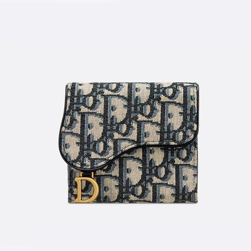 디올 새들 로터스 지갑 블루 디올 오블리크 자카드
