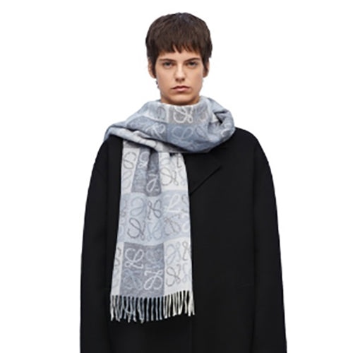 로에베 체크보드 머플러 블루&화이트
