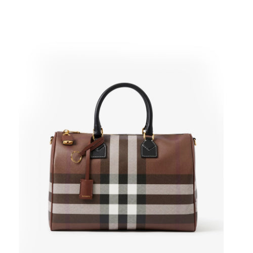 버버리 체크 볼링백 브라운