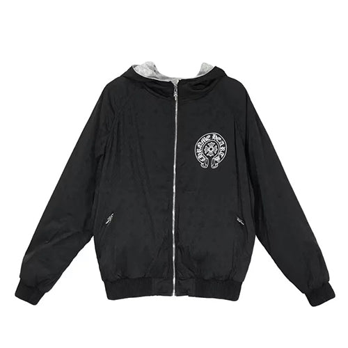 크롬하츠 토널 모노그램 호스슈 로고 지퍼업 후드티 블랙