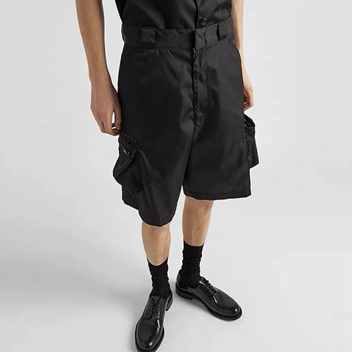프라다 로고 플라크 지퍼 반바지 블랙