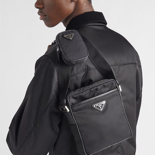프라다 리나일론 앤 사피아노 레더 숄더백 블랙