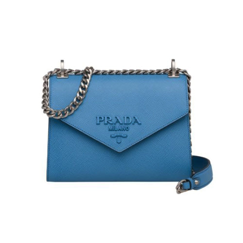 프라다 모노크롬 사피아노 레더 숄더백 블루