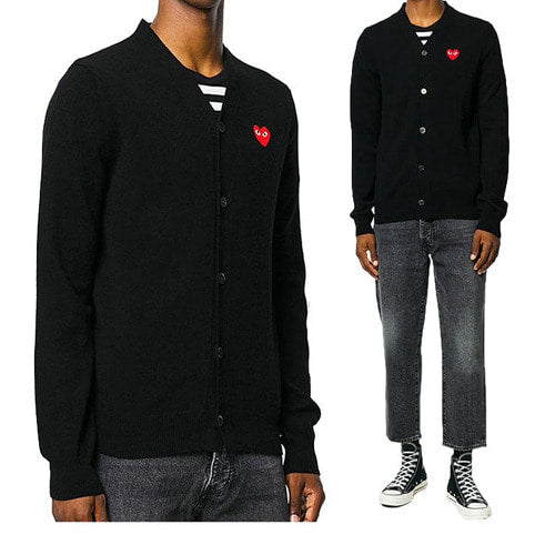 (국내배송, 당일출고) 꼼데가르송 레드 와펜 브이넥 가디건 블랙