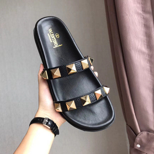 발렌티노 락스터드 슬라이드 블랙