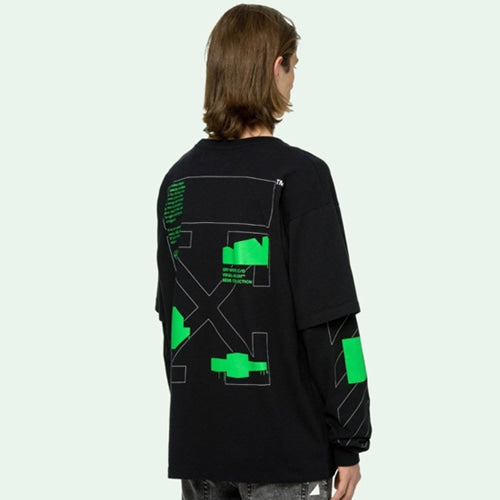 오프화이트 아치 쉐잎스 더블 슬리브 스웻