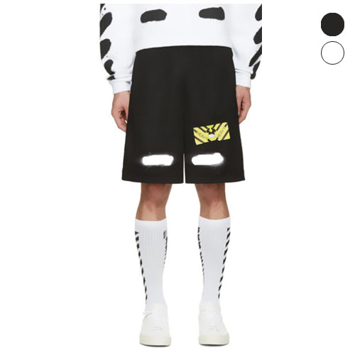 오프화이트 페인팅 헤비 하프팬츠