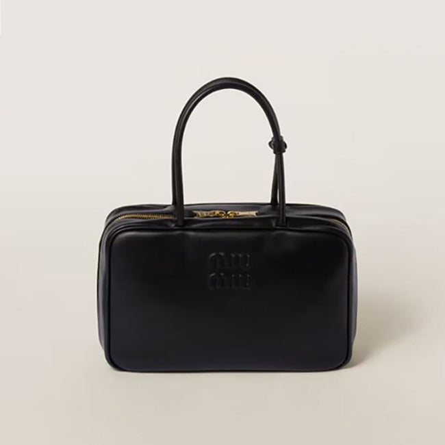 미우 미우 가죽 탑 핸들백 블랙