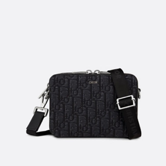 디올 스트랩 지퍼 파우치 블랙