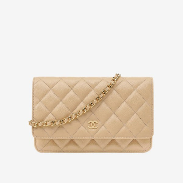 샤넬 클래식 체인 지갑 골드 메탈 베이지