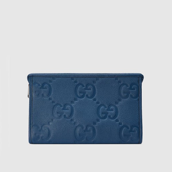 구찌 점보 GG 지퍼 파우치 블루 레더